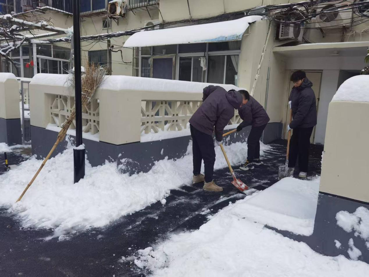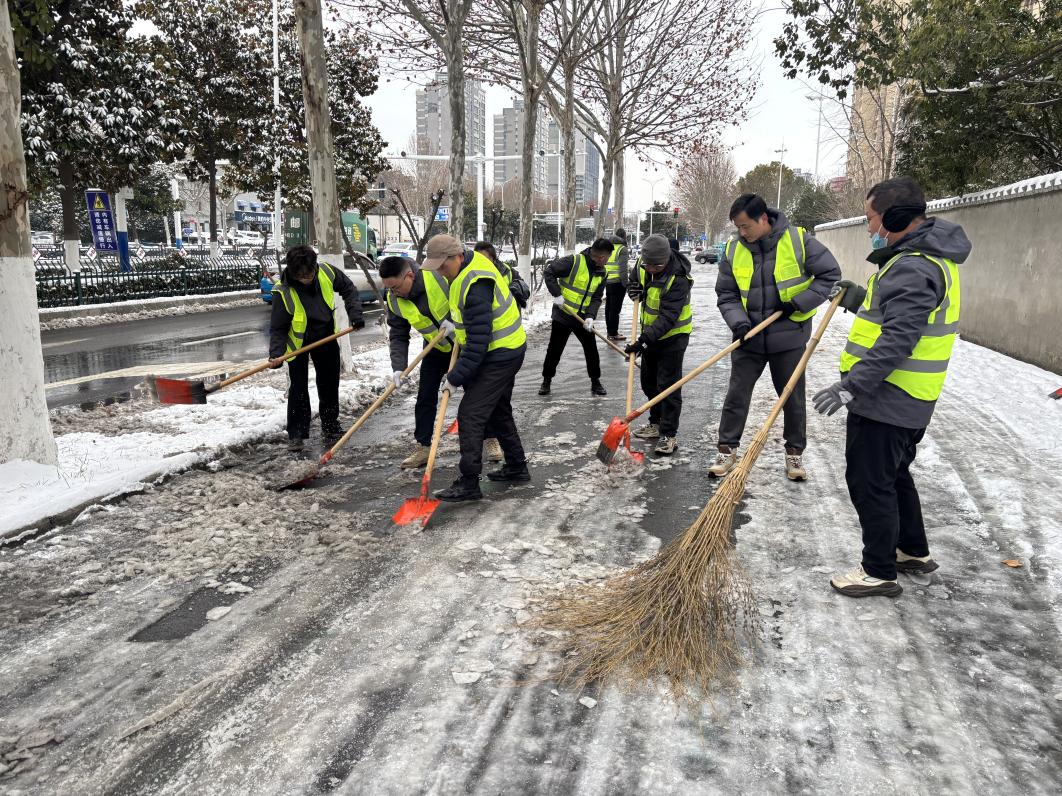 降雪當(dāng)晚,公司領(lǐng)導(dǎo)率先垂范,連夜趕赴上級(jí)公司參與統(tǒng)一組織的除雪行動(dòng),帶頭沖鋒在清雪一線;同步組織工作人員對(duì)公司門口及周邊重點(diǎn)路段有序拋撒融雪鹽,防范路面結(jié)冰打滑,守護(hù)夜間行人與車輛出行安全。1月20日上午,公司第一時(shí)間組織干部職工分兩批次前往四海天橋、工行小區(qū),大家手持鐵锨、掃帚、推雪板,分工協(xié)作鏟積雪、清死角、通路面,高效完成兩處區(qū)域清雪任務(wù),保障道路順暢通行;1月20日下午,公司積極響應(yīng)市級(jí)部署,集結(jié)20名骨干力量奔赴淮舜路鐵路立交橋北頭至陳洞路立交橋路段,集中清除北側(cè)非機(jī)動(dòng)車道積雪積冰,助力城市道路恢復(fù)通行秩序。